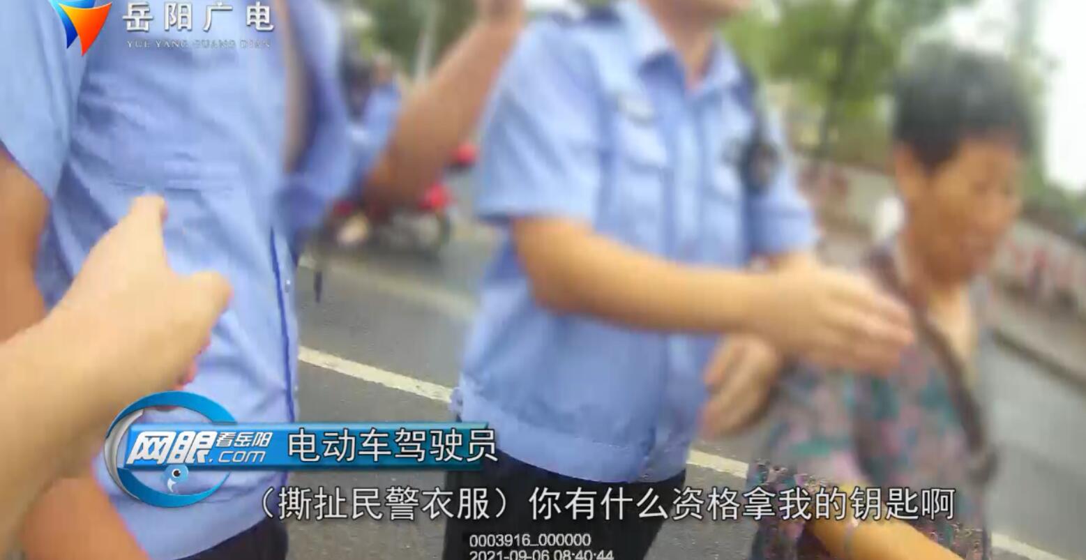 岳阳广电全媒体讯(记者 李素芳 通讯员 李发建)9月7日,在华容县华冠君豪大酒店路段,一女子驾驶一辆加装晴雨伞的电动车,在面对交警的现场执勤时,竟然对交警又打又咬。