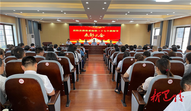 表彰大会现场岳阳县融媒体中心9月9日讯(记者 周雨萱)9月9日,县教体局召开教师节表彰大会,90名优秀教育工作者受到表彰。