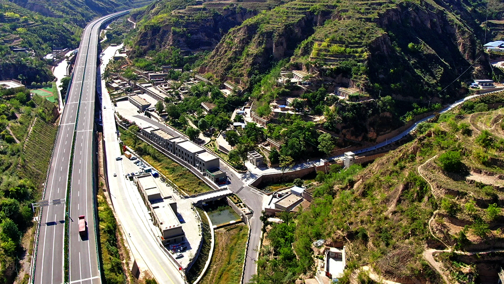 黄土高原,沟壑纵横。青砖窑洞,整齐排列。郝家桥村是一个典型的陕北乡村。村口石壁上“传承红色基因,学习劳模精神”格外醒目。