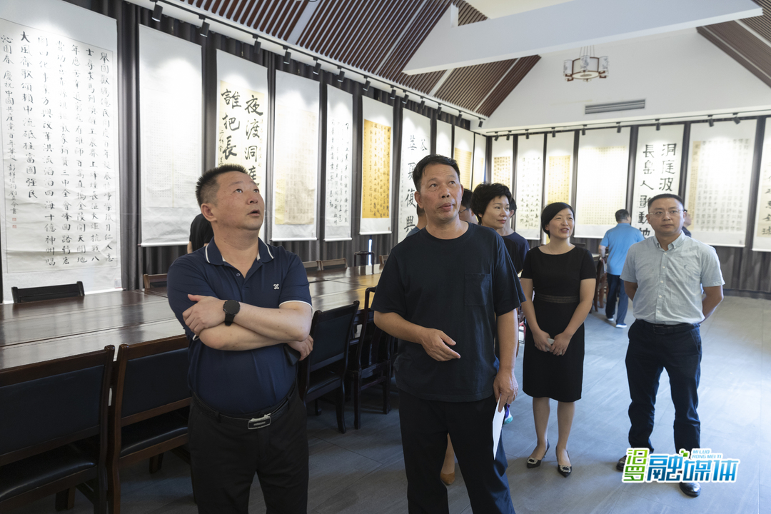 艾志军(左一)一行观看书法展