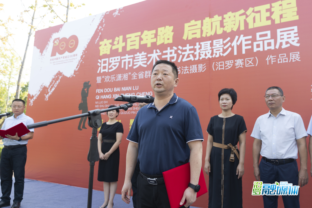 此次展览由市委宣传部、市委党史学习教育领导小组办公室指导,市文学艺术界联合会主办,市融媒体中心、美协、书协、摄协、文化馆、美术馆、书画院协办。线下展览持续到11月中旬,为期两个月;线上展览将于9月18日在“微汨罗”公众号展播。