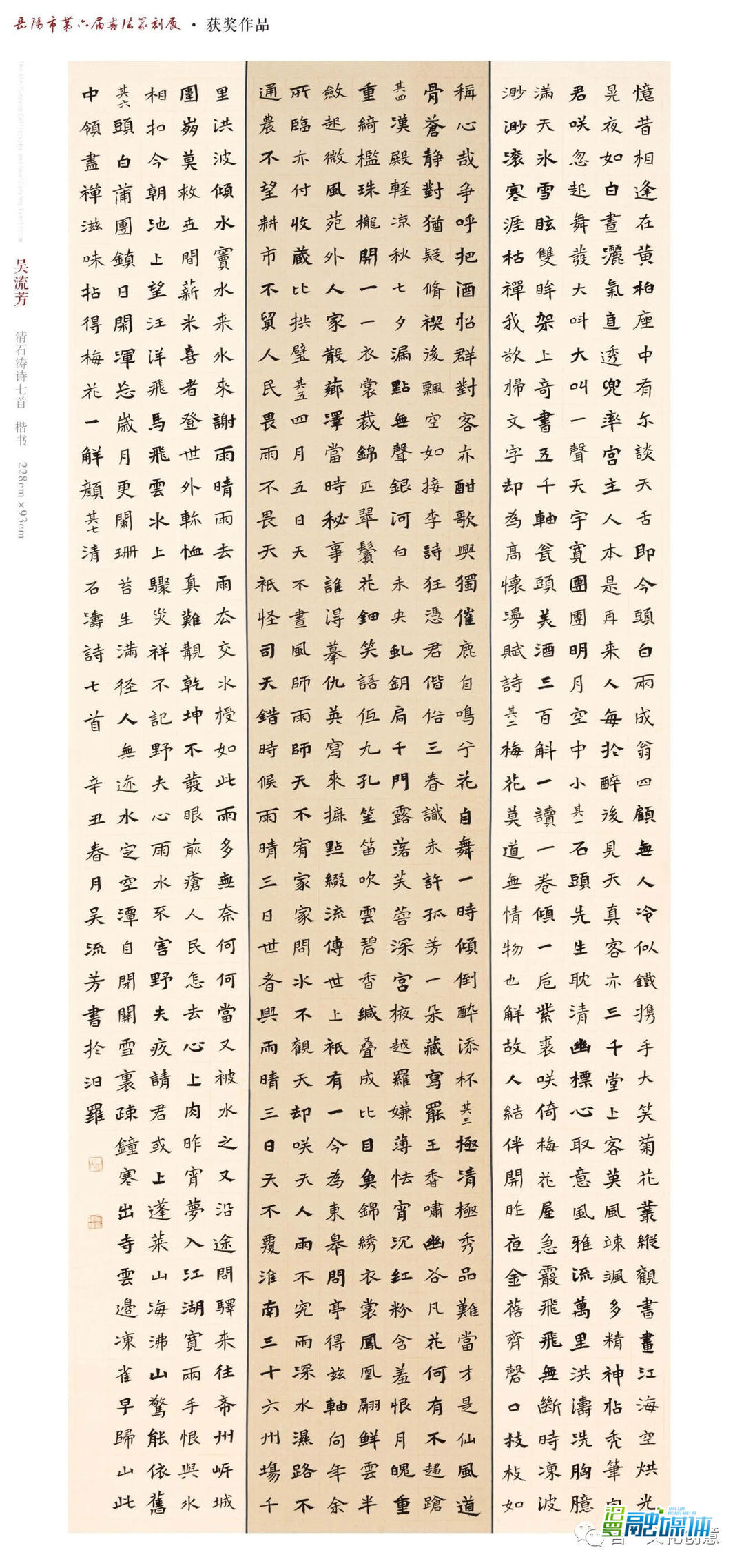 岳阳市第六届书法篆刻展共收到来自岳阳各县市区,岳阳籍外地作者的投稿作品856件,组委会聘请专家对所有来稿进行初评、复评、终评、文字审读,最终评选出获奖作品20件,入展作品145件,入选作品126件。其中,汨罗获奖2件,入展5件,入选作品14件。