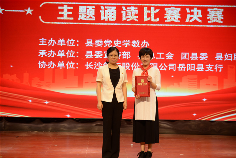 岳阳县融媒体中心9月17日讯(记者 钟斯洋 袁颖)9月17日,由县委党史学教办主办,县委宣传部、县总工会、县妇联承办的“我心向党 经典诵读”主题诵读比赛决赛在集英学校举行。县委常委、宣传部部长何喜,县委常委、组织部部长冯建军出席。