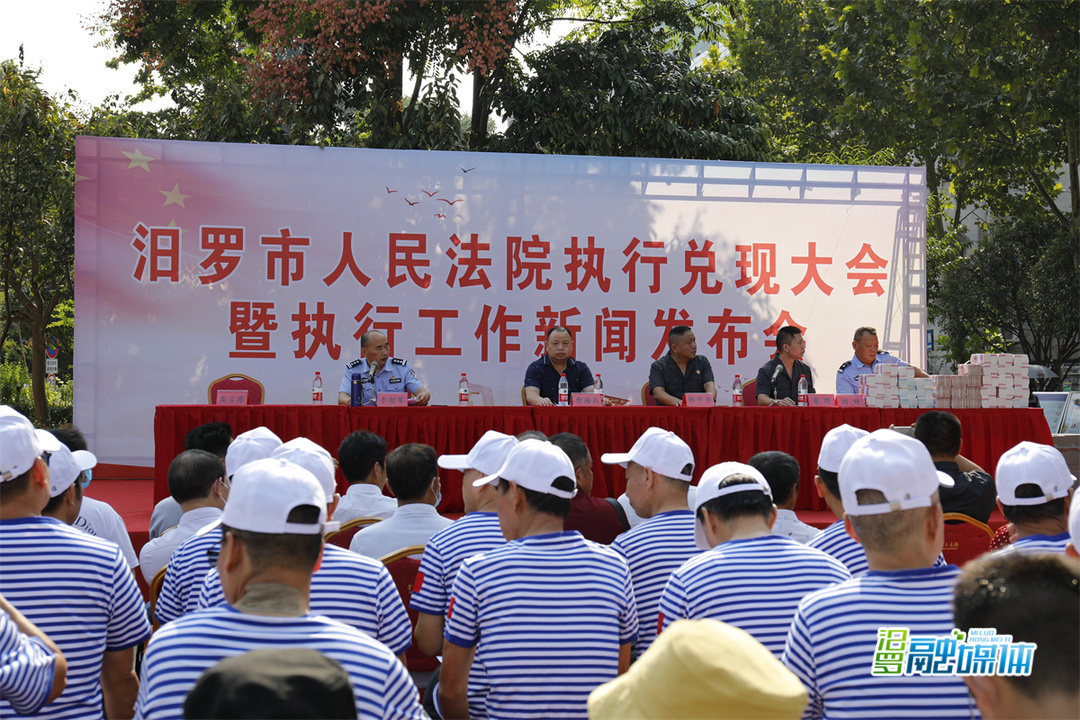 汨罗融媒体讯(记者 胥扬 任可)9月17日上午,汨罗法院召开执行案款集中兑现大会暨执行工作新闻发布会,现场为36名申请执行人发放执行案款共计3000万余元。汨罗市委政法委领导、部分人大代表、政协委员、新闻媒体应邀参加会议。
