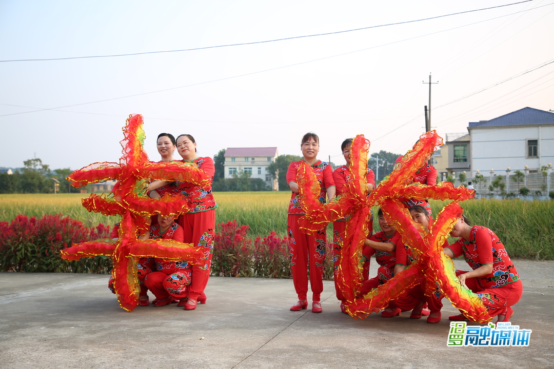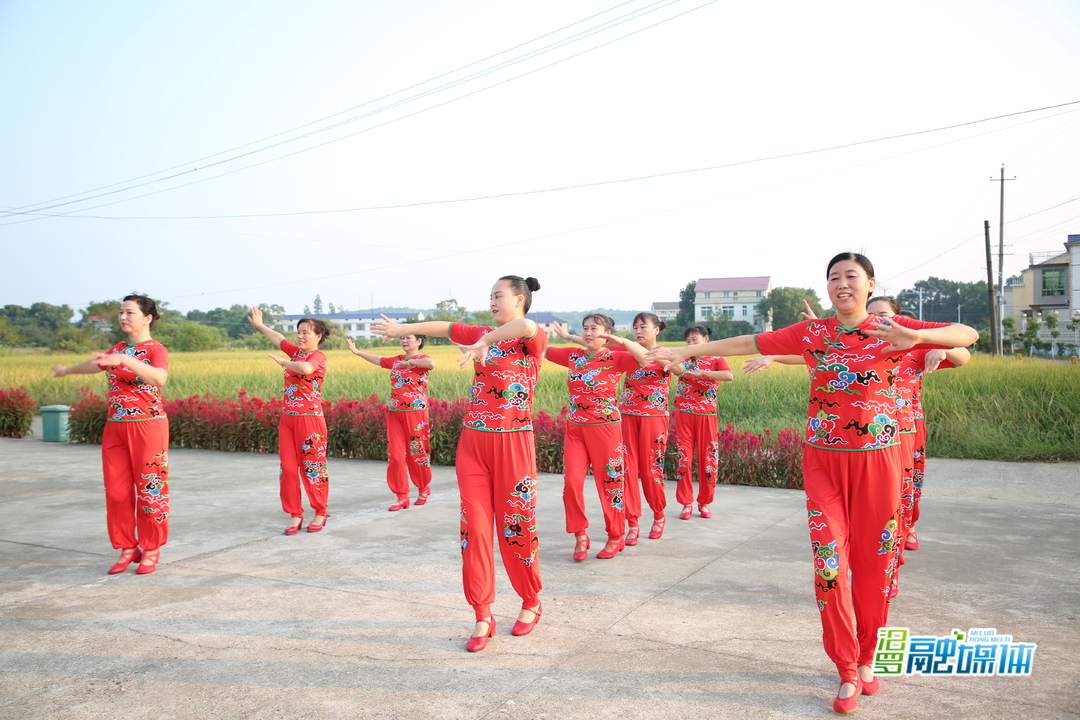 落日余晖下,合作社的田里风吹稻浪,传来阵阵清香。"我们的家乡,在希望的田野上……"田边的晒谷坪里,村里的妇女跳起欢快的舞蹈,迎接丰收的好时光。