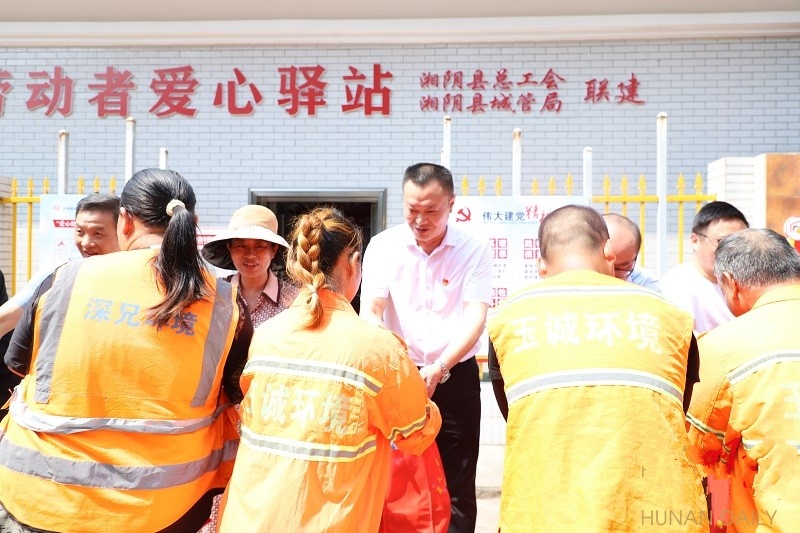 在当日举行的户外劳动者爱心驿站移交活动中,县总工会向环卫工人代表发放了防暑慰问物资。岳阳市总工会副主席、女工委主任朱飞鹰与环卫工人代表共同参观驿站。湘阴县总工会负责人表示,下一步,将积极发挥工会新阵地作用, 逐步扩大覆盖范围,在全县范围内打造10个爱心驿站,让一线户外劳动者在辛苦工作时体会到“家”一样的温馨。