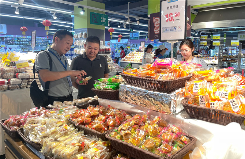 据了解,为确保月饼市场消费安全,县市场监督管理局的工作人员节前对全县从事月饼销售的超市、商店等开展了专项监督检查,确保无过期、三无、霉变月饼流入市场。