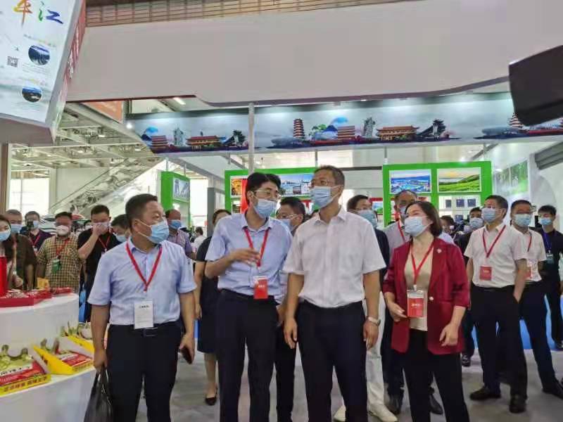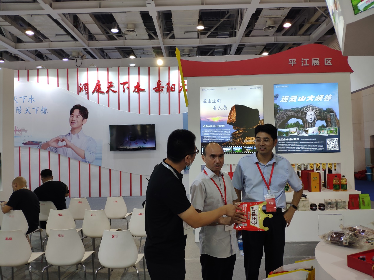 2021年9月24日,“锦绣潇湘 献礼百年”2021湖南文化旅游产业博览会在长沙开幕。岳阳展馆共汇集了岳阳市各县、市区近百家文旅企业、景区参展,向湖南亮出了“大美岳阳”的文旅最强阵容。开幕式后,副省长谢卫江、省文化和旅游厅副厅长黄东红、二级巡视员王鹏等领导饶有兴趣地来到岳阳馆巡馆。