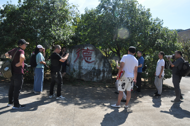 (摄影家在“德”字碑前留影,汲取奋进力量)