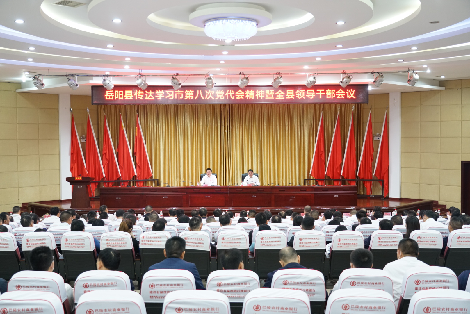 岳阳县融媒体中心10月8日讯(记者 秦淑云 熊佳)10月8日,我县召开传达学习市第八次党代会精神暨全县领导干部会议,深入学习贯彻市第八次党代会精神,就后阶段工作进行安排部署。县委书记肖湘晖在会上强调,全县上下要进一步统一思想,咬定目标,凝心聚力,争先创优,全面并超额完成年度工作目标任务,为推进“四区”建设、实现“十四五”规划开好局、起好步。县委副书记、代县长吴光文主持会议。全体在家的县级领导和处级干部,县直和驻县各单位主要负责人,各乡镇(办事处)党委书记、乡镇长参加会议。